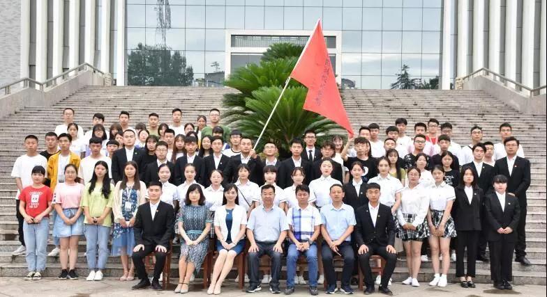 随着激昂的音乐响起,2019届学生会副主席张宋杰向新任学生会主席黎浩授院学生会旗帜,学院领导向新任团学干部颁发聘书。黎浩带领全体团学组织成员宣誓:“以为同学服务为宗旨,严守校纪校规,提高自身素质,为把团学组织建设成为一个民主、团结、和谐的集体而奋斗!”
