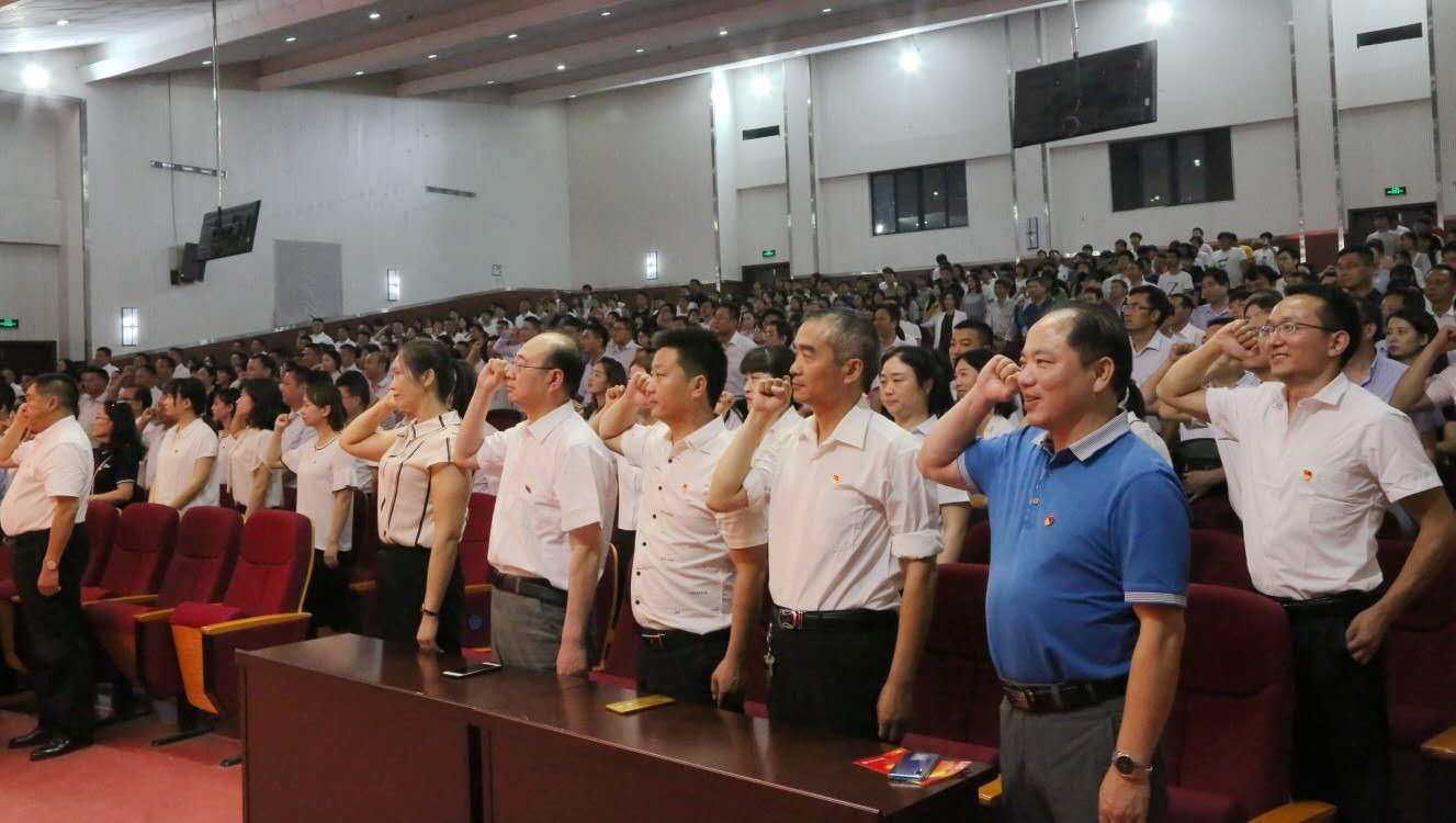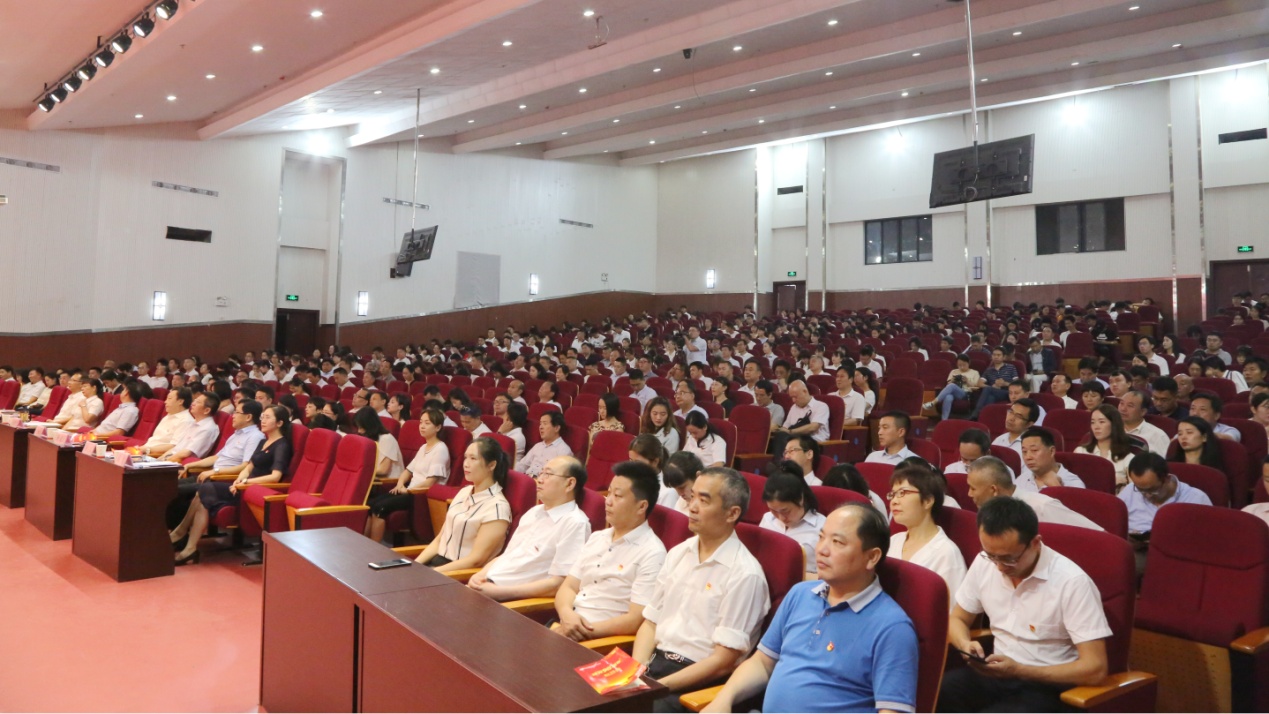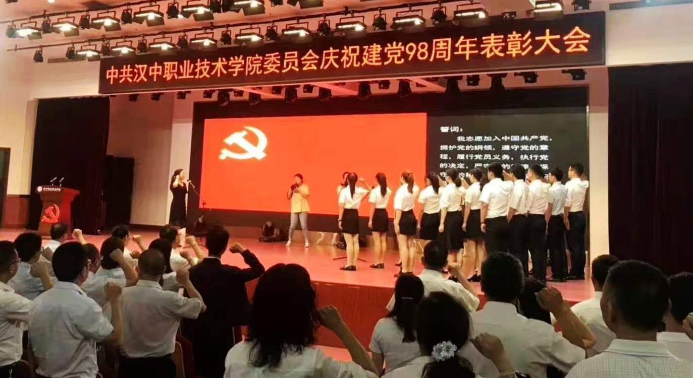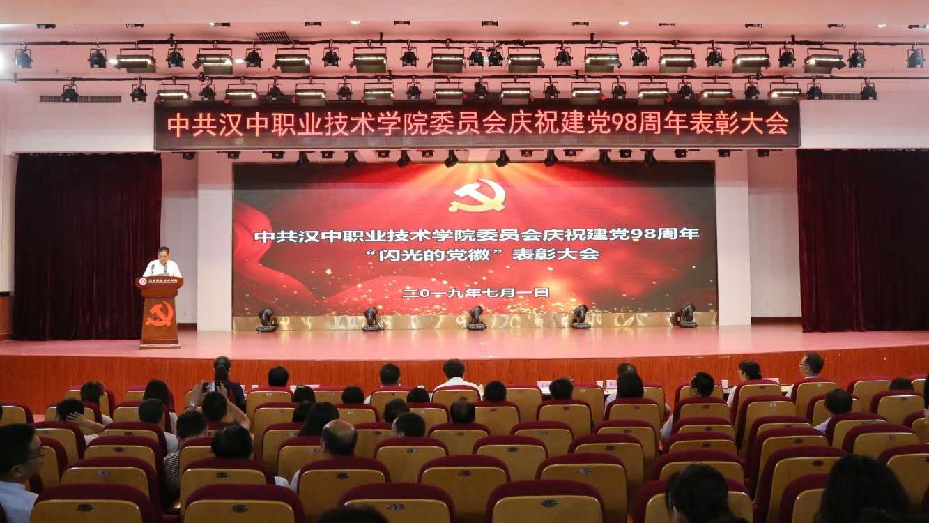 2019年7月1日,汉中职业技术学院隆重举行庆祝建党98周年“闪光的党徽”表彰大会,对近年来在“两学一做”学习教育、“思想奠基•党性塑造”工程、“激情、干净、超越”作风建设、“讲政治、敢担当、改作风”专题教育等活动中涌现出的先进党支部、优秀党务工作者、优秀党员的集体和个人进行表彰。党委书记王永安作主题讲话,院长余德华主持大会。学院党委成员,全体在职党员,附属医院党员代表,各系入党积极分子及共青团代表等500余人参加了大会。