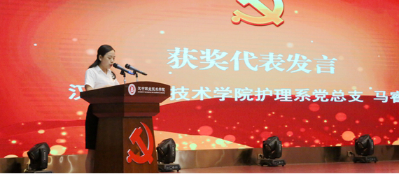 学院党委副书记、工会主席赖成宣读表彰决定。学院党委成员分别为先进党支部、优秀党务工作者、优秀党员颁奖。护理系党总支教学党支部党员马睿代表获奖集体和个人发言。