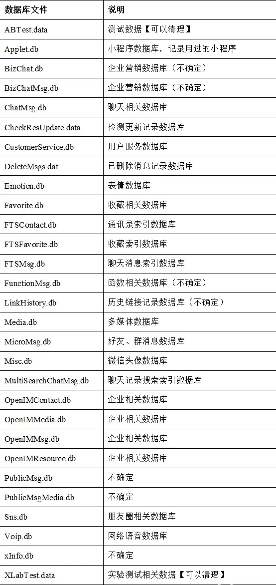 微信聊天记录缓存文件夹,用于储存近期的聊天记录、手机同步部分消息记录。子文件夹“bak”文件夹,当微信崩溃时临时存储聊天记录。