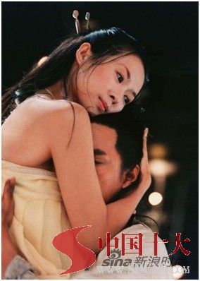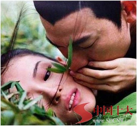 比起跟刘天王的蜻蜓点水,章子怡跟金城武在《十面埋伏》中的激情戏称得上是大费周章。尽管过程中同样充满着试探和扭捏,不过两人在荒草丛中以天为盖地为庐的激情一战可谓酣畅淋漓,这场如同泄愤一样的激情戏,章子怡跟金城武真正做到了回归大自然的感觉。