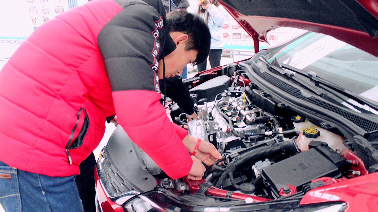 开幕式上,汉中职院赛点评委付宽老师、参赛选手王艺霏同学分别代表评委及参赛选手做了表态发言,陕西唐龙汽车集团董事长张小龙代表行业企业发言。