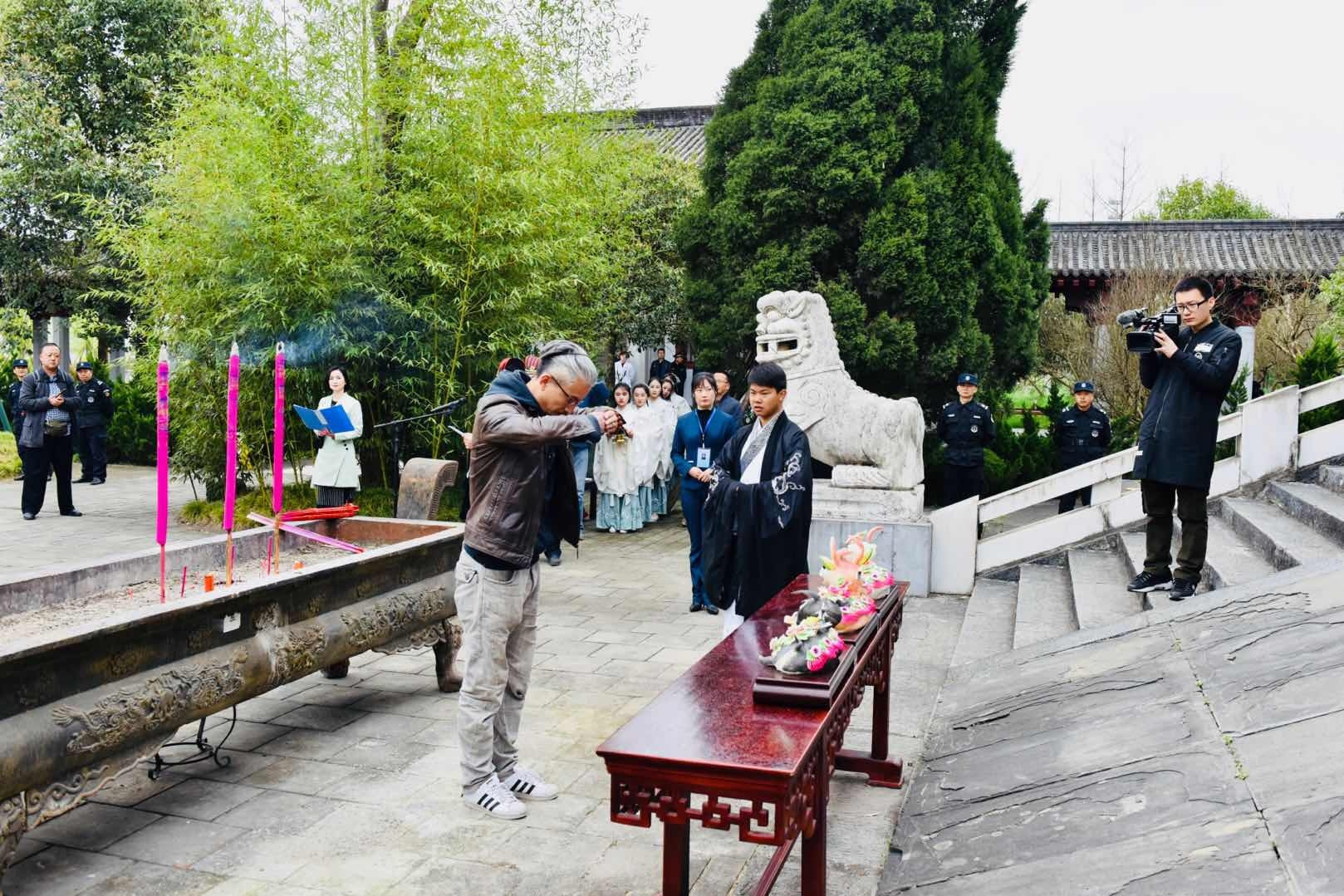 祭拜张骞作为“张骞回汉中老家”系列活动的重头戏,影片合作方共同在张骞纪念馆举行了祭拜张骞仪式,《凿空者》剧中的张骞与历史上的张骞进行了跨越2100年的隔空交流。