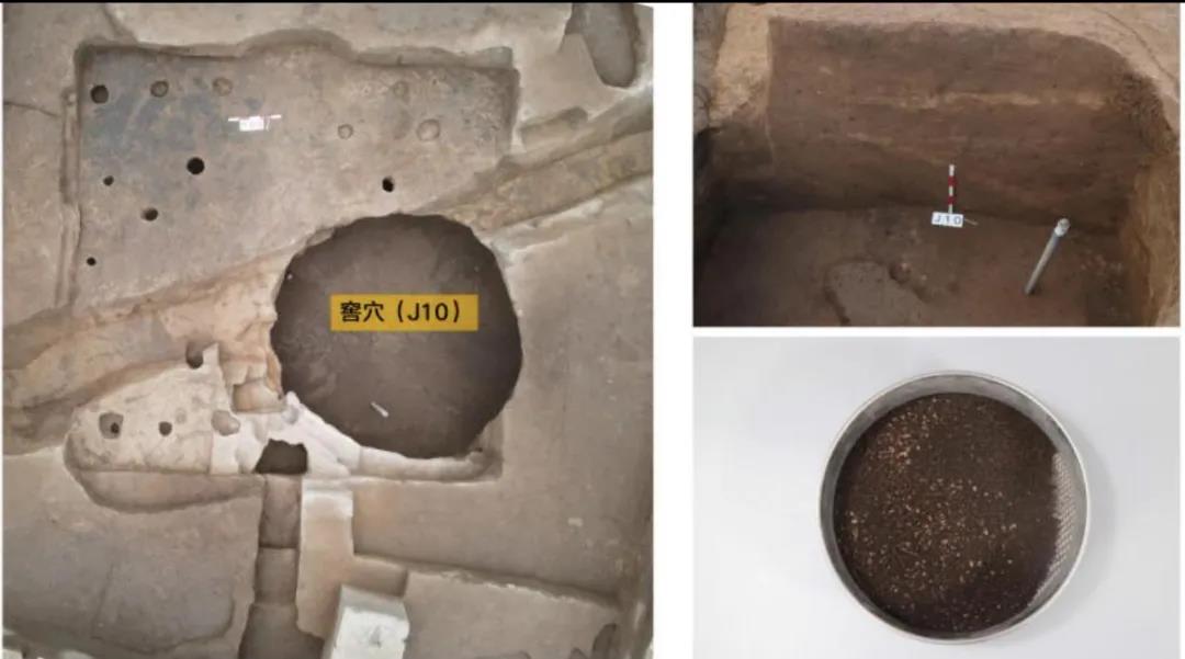 值得一提的是,房屋间发现数座袋状窖穴,最大一座位于中心广场,容积约60立方米,底部保存近0.4至0.6米厚的炭化粟黍遗存。勘探发现环壕外东南部疑似有陶窑区,西北部疑似有墓葬区。